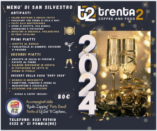 Per un Capodanno speciale un tavolo al T2 devi prenotare , un cenone speciale tutto da gustare e poi allo scoccare della mezzanotte a ballare ti devi scatenare ....non mancare !!!!!!